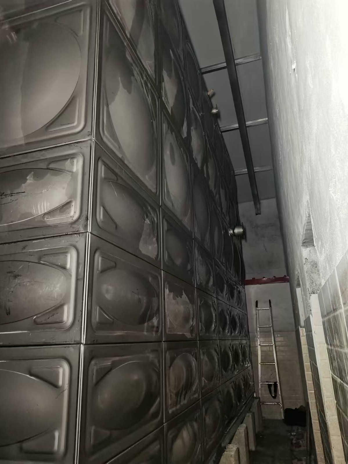 我司承接的遼寧省丹東市圣林職業學院不銹鋼消防水箱項目,現已安裝試水完成。不銹鋼焊接水箱采用不銹鋼板沖壓后帶有一定凹凸形狀,使之鋼度大大提高,再焊接成薄殼箱體的新型水箱,是目前國內較先進、較美觀、適用的水箱,其結構精巧、合理、先進,用材省,可在民用及工業建筑中廣泛采用,是儲存、調節用水及消防項目的理想設備。